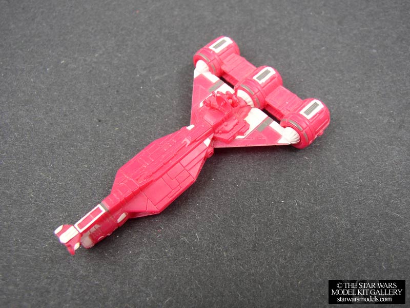 This is one of the 4 SMALL pre-painted plastic kits that AMT/ERTL put out around Episode I. They are very easy and really intended for kids. The paint job on the others actually isn't too bad. The Republic Cruiser, or Radiant VII if you prefer, is probably the least well done. This took me like 5 minutes to just snap together. I like to keep pre-painted kits the way they are because that makes them unique. There really isn't too much to say about this kit. I got it in a set of all of them on eBay for around $10. | ||||||||||||||||||||||||||||