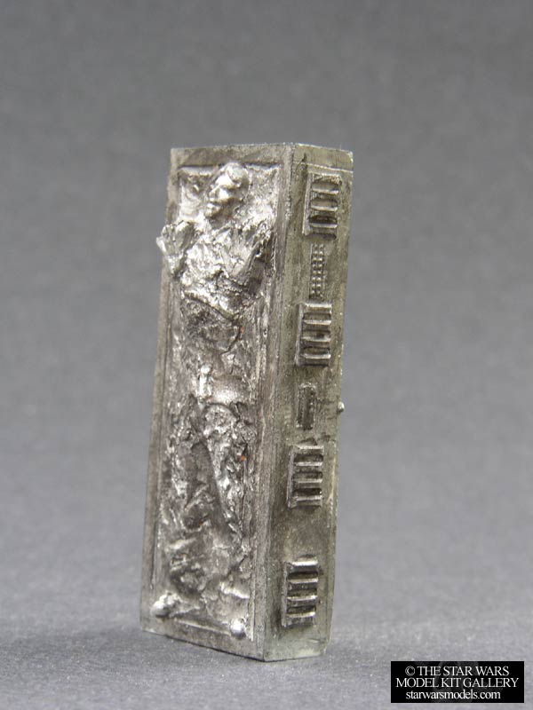 | This is the other Han Solo in Carbonite model I have. I'm surprised the subject wasn't more popular with garage kit companies. This little guy is small! Like 2 and a half inches small! It's one piece and a real quickie. I think it may have been intended more for RPG purposes or diorama purposes. The sculpting is pretty accurate for something this size. When you go this tiny, it's hard to make everything perfectly accurate. I used the same painting techniques on this kit as I did on the big Han in Carbonite kit from Begul. See the write up for that kit for a detailed explanation of the dry brushing techniques I used. Not much more to say about this kit. MMI also made an accurizing kit for the grills on the Millennium Falcon that I used on my accurized and lit Falcon. |