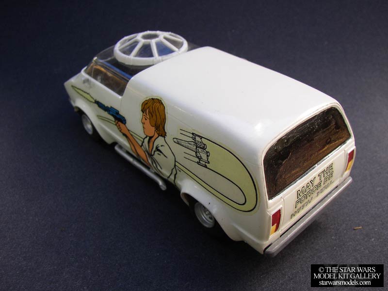 | The MPC Vans....hmmmm. I'm not even going to say anything. This was a really old kit that proved to be difficult due to its age. The decals were totally ruined and I had to get a second kit just to use the decals. They looked like they had gotten wet years ago and just pooped out over the years. The new ones were much better and were only slightly yellowed. Not bad considering how old they are. They actually glow in the dark. Assembly was fun because I'm so used to doing ships and people and here I am doing a 70s van! You can't really see it but the interior is actually finished. Assembly was really good for how old the kit is. It fit nice and actually snapped together tightly the majority of the time. I sprayed it Gloss White and picked out all of the details with different colors. The only tricky part was making sure the decals were even. I got this kit from a good friend online for around $7. |