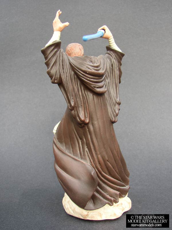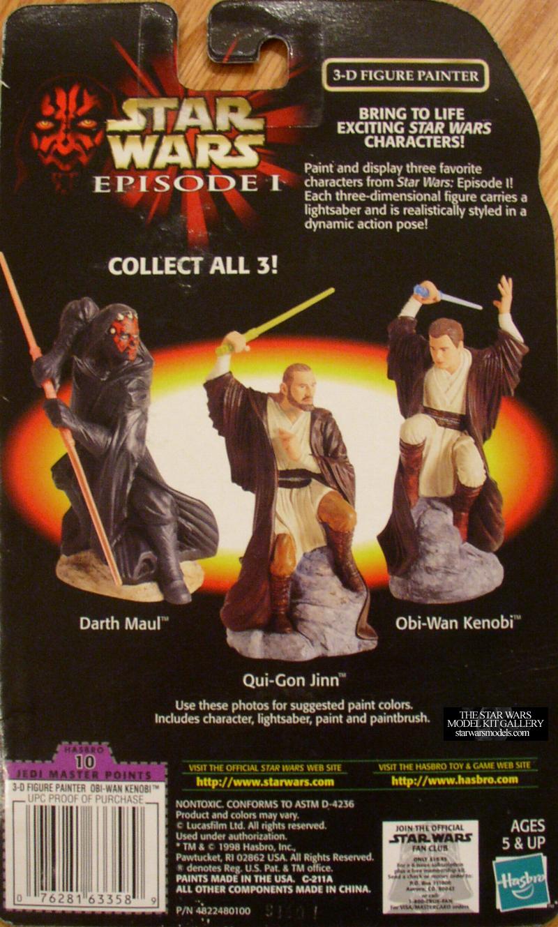 This figurine goes with the Qui-Gon and Darth Maul from Hasbro. This kit only had two pieces, the body and the lightsaber. Painting consisted of various shades of brown much like Qui-Gon. Obi-Wan had lighter shades than he did though. The paints that it come with aren't bad, just be careful because they can bubble up very easily. Brush slowly and softly! Like the other kits, also be careful when inserting the lightsaber into his hand, you can scrape the paint off very easily. I got this thing for around $3. |