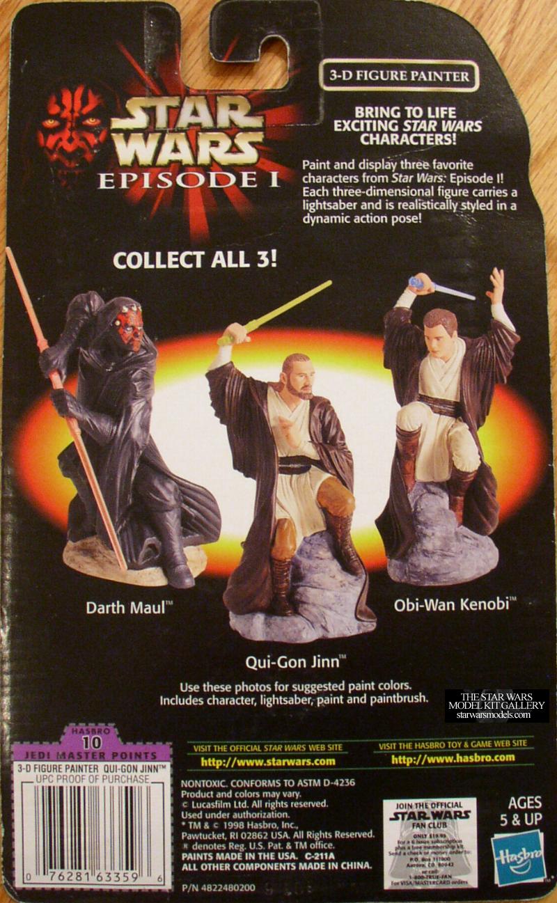 This is part of the series that Hasbro put out around Episode One. There was also a Darth Maul and an Obi-Wan. They are basically two pieces, the person and their lightsaber. They are molded in pretty soft vinyl and don't look too bad. They come with some small tubs of paint that you van use if you want. I did for some stuff. The only assembly I can speak of is inserting the lightsaber into his hand. Just be careful because it is a tight fit and you can easily scrape paint. As for painting, I used the brown that it came with to paint his robe. I used various mixes of browns for the rest of his clothing. For his hair I painted it brown and dry brushed some lighter browns and a little gray. I don't know, there really isn't much to say about this thing. I got this at KB for around $3. |