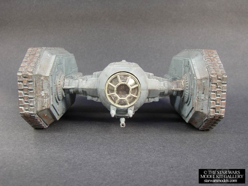 This is a really great kit of a very obscure subject. The TIE Crawler was seen in probably one frame in the comic Dark Empire strewn among debris on a Coruscant battlefield (probably a rooftop the way Coruscant goes!). The craft was featured in the Essential Guide To Vehicles and Vessels and this kit is an accurate representation of it. The 4ourth Axis gives you an MPC/ERTL TIE Interceptor (although I suggest the AMT/ERTL TIE Fighter) kit and some resin conversion pieces. The resin was pretty much perfect and needed little to no cleaning at all. The parts fit together well and there were no hang ups. The three guns are several different small pieces so you really have to be careful. The body of the TIE Interceptor required a little trimming to fit the pieces right, but it was along pre-molded lines so it was very easy. Painting came up very quickly. I base coated everything in Model Master Intermediate Blue. I usually use a very light blue or gray for my TIE variants, but I felt Intermediate Blue gave a more embattled hardened look to it. Weathering was tricky as is always the case with Star Wars. The Empire dumps all of their pilot washouts into TIE Crawlers and they see a lot of grunt action so it is safe to assume the Empire doesn't care much about them. That's why I decided to heavily weather this one. I started off by dry brushing black, browns and tans along the tank treads. I then dry brushed a little black all around. I dry brushed some more browns near the heaviest weather spots like around the treads, underneath and in front. I also added some paint chips here and there. I then washed everything in a nasty black to really up the ante. I also drilled a small hole in the main gun on the bottom for accuracy. All in all this was a great kit that I recommend due to ease of construction and its unique subject matter. It was available from The 4ourth Axis for $40 or $35 depending on whether or not you want the Interceptor kit, but they have apparently stopped sales of it. | ||||||||||||||||||||||||||||