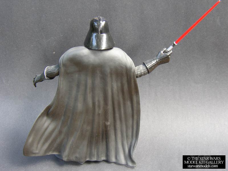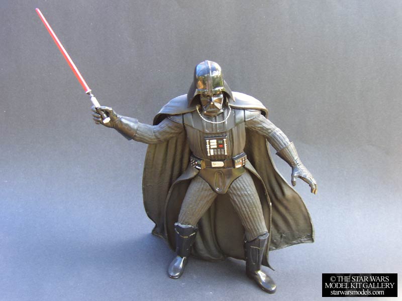 This nice kit was one of my first figure kits. I remember it came in the mail when I was jamming with the band I used to play in. I showed it to the guys and they all thought I was a pretty big dork. But anyway, this kit is actually very cool. The pose is pretty neat, strange, but neat. It was pretty much all vinyl except for the hard styrene helmet. This is good because it probably would have gotten warped if it was vinyl. Construction wasn't too difficult, but since this was one of my first vinyl kits, I was still trying to use plastic cement to glue it. I pretty much taught myself modeling stuff so it used to take me a while to catch on. I didn't start looking online for modeling tips until recently. So I had some trouble but eventually got past it with super glue. I painted it pretty much all flat black. I painted the armor gloss black and painted the details according to reference pictures. I got this kit off eBay for like $12 I think. |